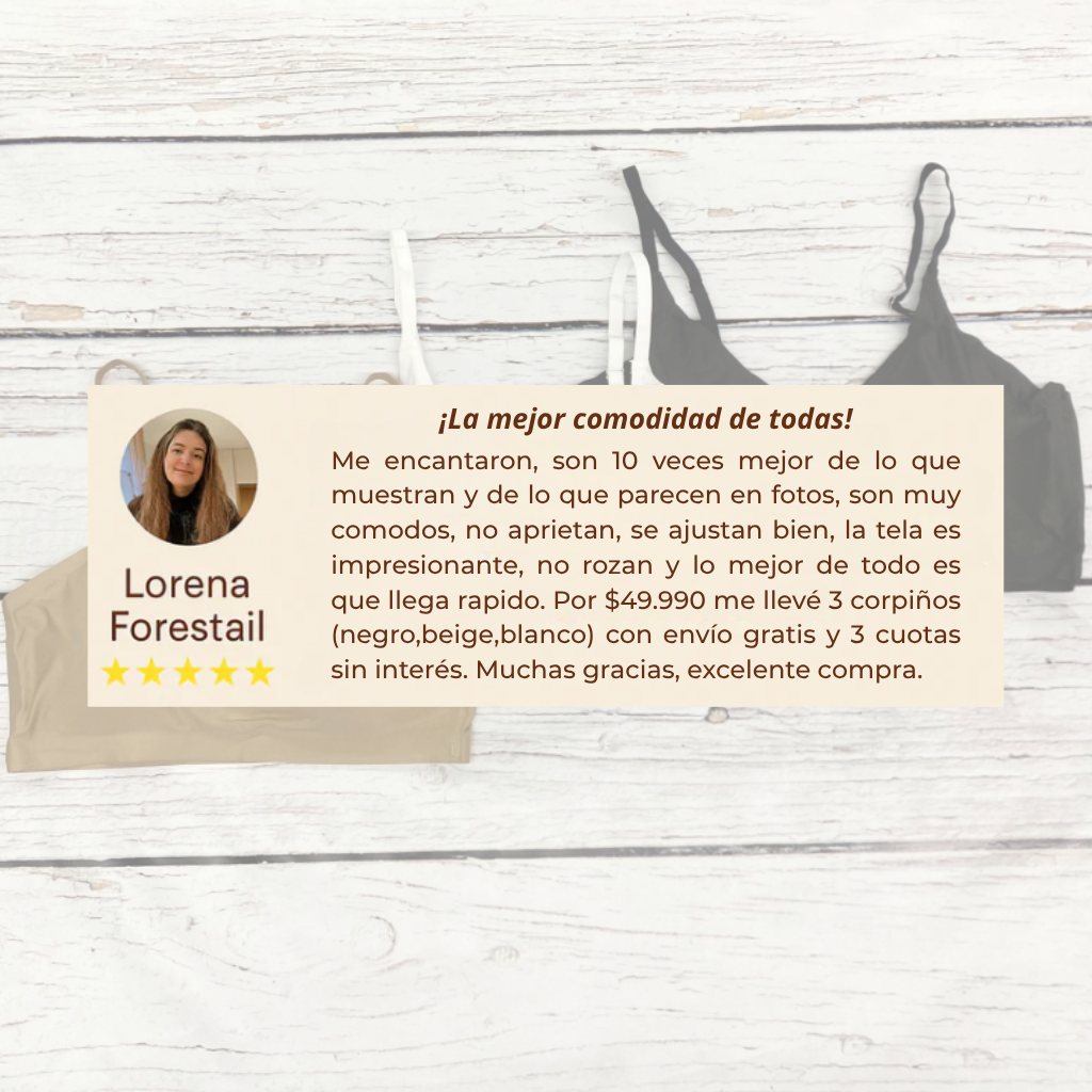 “No puedo creer lo cómodos que son” Lo uso todo el día y ni me acuerdo que lo tengo puesto. No deja marcas y me mantiene todo en su lugar. Ya no quiero usar otro.